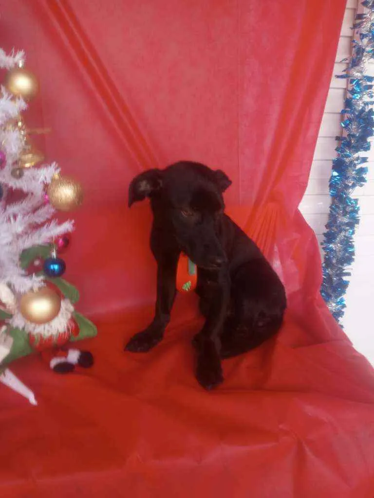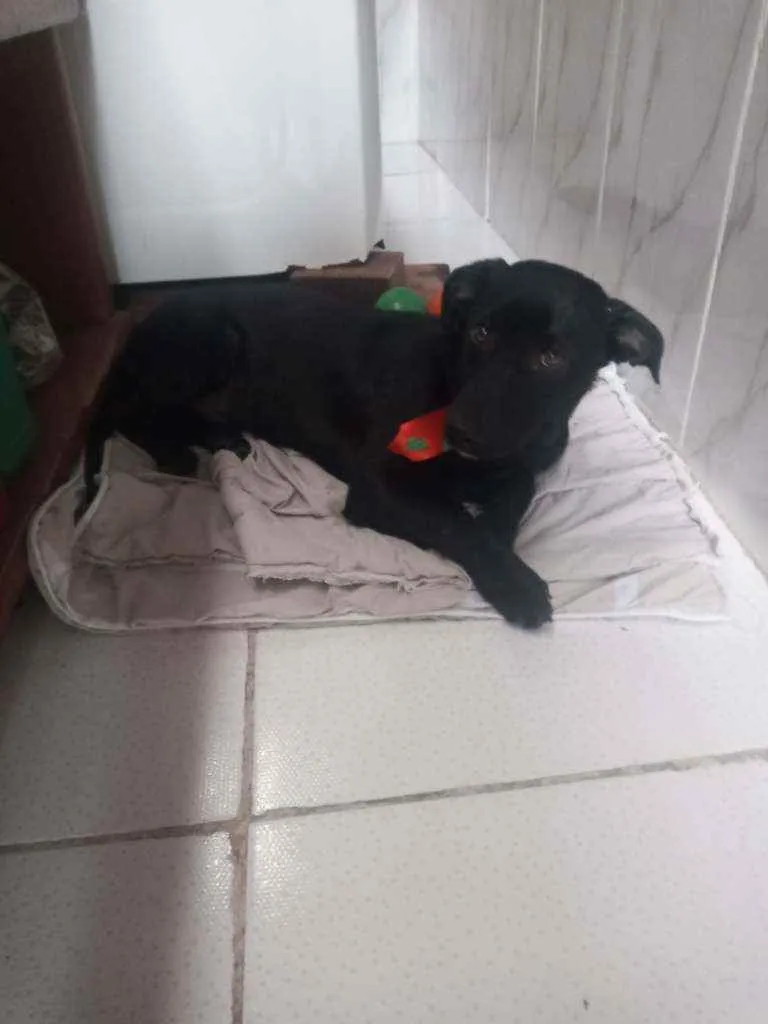 Resgatamos esse bebe de uns 7 meses está na lavanderia da minha mãe, ela não fica porque já tem 3 sendo uma brava com cães de fora.