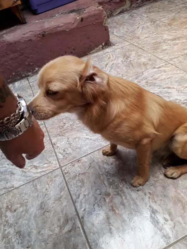 Esse cachorrinho foi resgatado no meio da avenida quase sendo atropelado. Tem mais ou menos 1 ano, é muito dócil e se dá bem com outros animais, inclusive gatos.