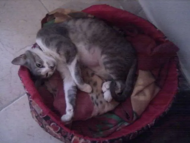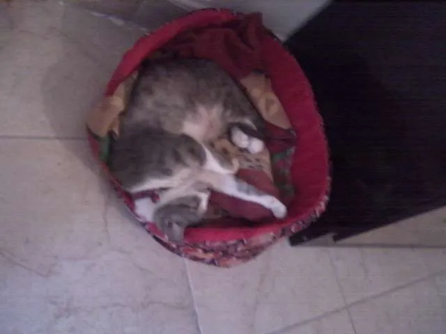 Ela teve uma história um pouco triste fui a procura do meu cão que havia desaparecido qdo por a caso vi ela deitadinha toda enroladinha numa lixeira de uma casa qdo cheguei perto vi que ela esta mto mal com mta sarna e fraqueza que nem tinha forças pra se levantar então falei com o dono da casa e ele disse que ela havia amanhecido ali e que não era dele , não tive coragem pra deixa-la lá trouxe comigo levei ao vet. ela tomou uma injeção pra sarna e levei ela pra casa foram gasto apénas 45,00 pra salva-la da morte foram 3 doses de injeção contra sarna e hoje ela que pesava apenas 1 kilo esta com 5 kilos totalmente recuperada e castrada e vacinada é mto caseira e carinhosa educada e faz suas necessidades na caixainha não dá trabalho apenas pede mto carinho .