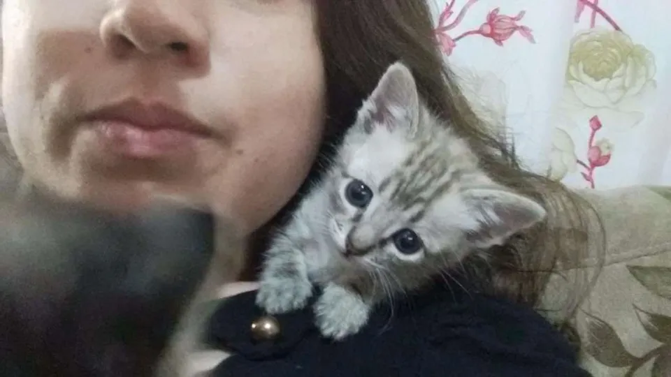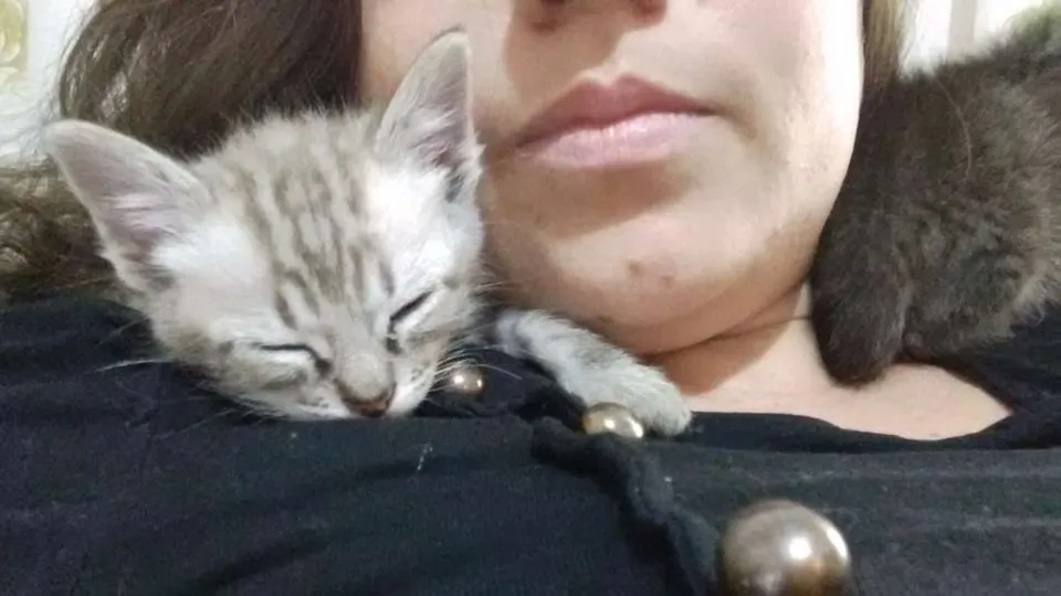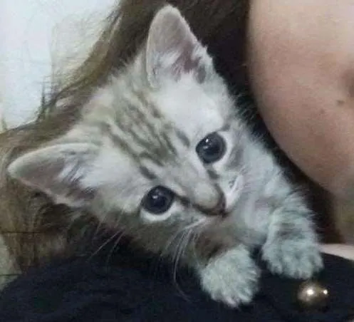 Gata com quase dois meses. Já foi vermifugada e já está comendo ração.