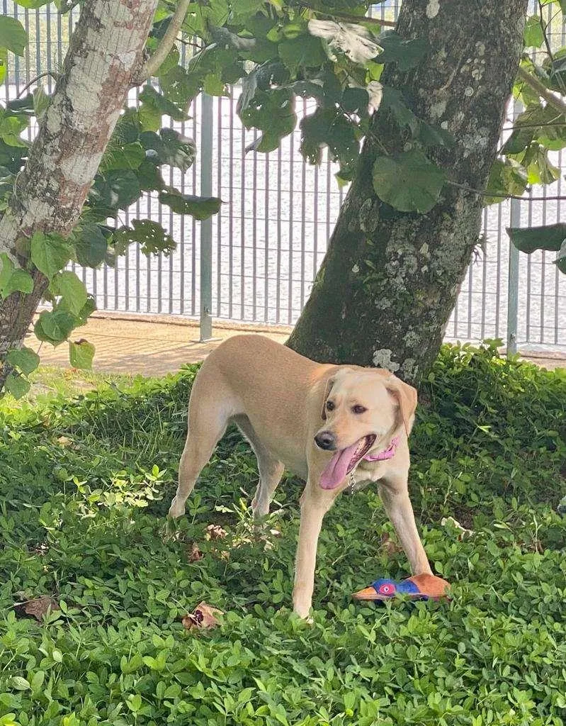 Eu sou a Bonnie! Sou uma mix labrador de 2 anos de idade. A tia fala que sou uma miss simpatia! Gosto muito dos humanos e sou dócil com todo mundo.
