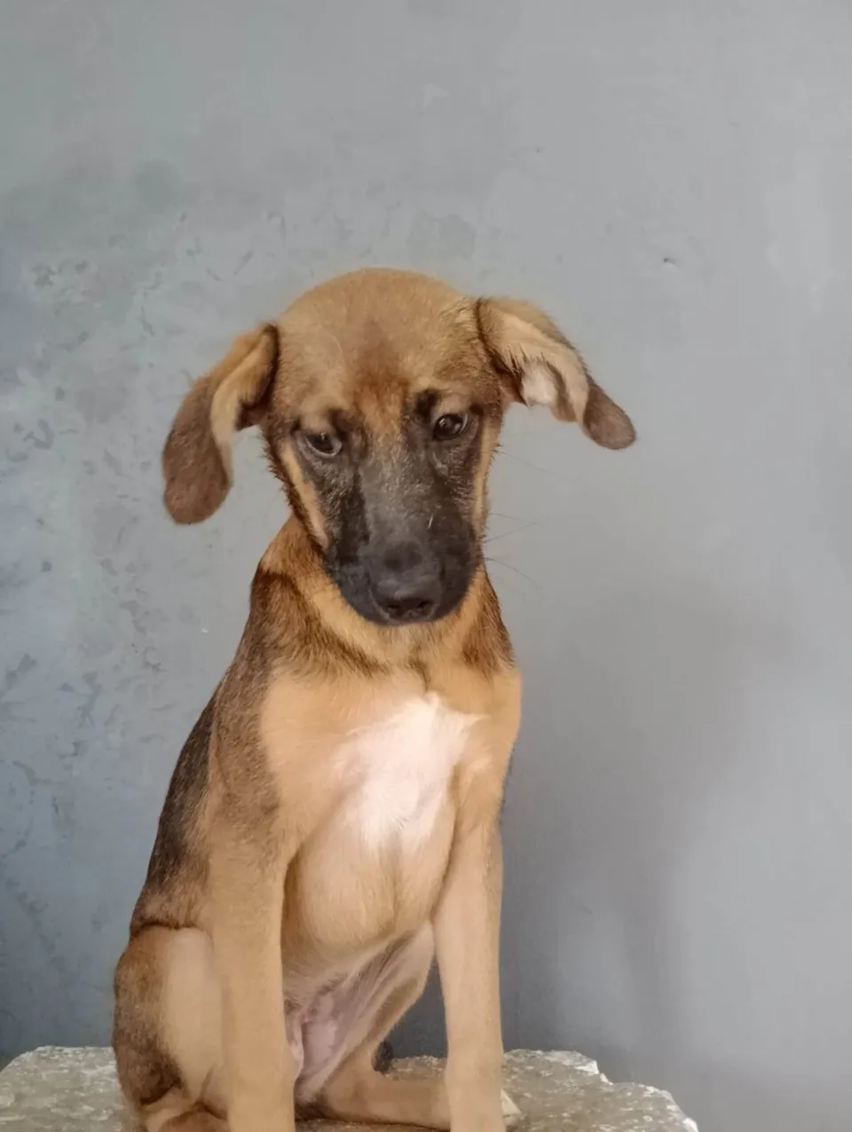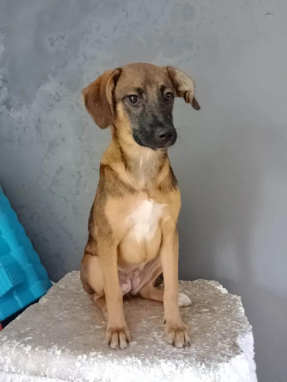 Meu nome é Cacau. Dizem que sou um docinho que nem chocolate! Tenho apenas 5 meses de idade e devo ficar porte médio!