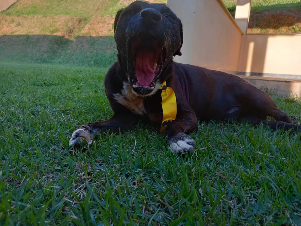 Sou muito dócil. Não estranho ninguém! É só chegar que eu já corro para ganhar um carinho. Gosto muito de brincar de bolinha , tirar umas sonecas gostosas e comer.