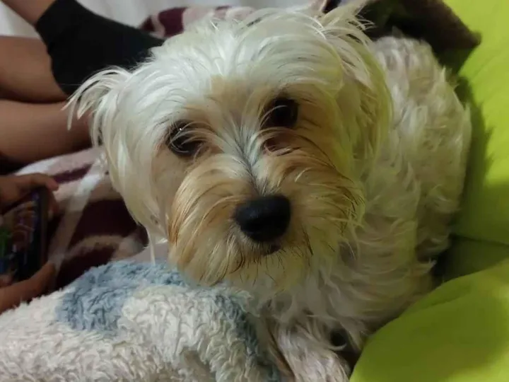 Lola foi abandonada, pois a dona teve um bebê e a colocou para fora. A resgatei até achar um lar para ela.
