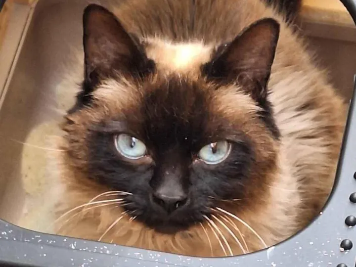 Este encantador gato Siamês, de olhos azuis profundos e expressão curiosa, está em busca de um lar cheio de carinho. Com sua pelagem elegante em tons de creme e marrom, ele é tão belo quanto doce. Atualmente em abrigo, ele espera por alguém especial que o acolha com amor e responsabilidade.
