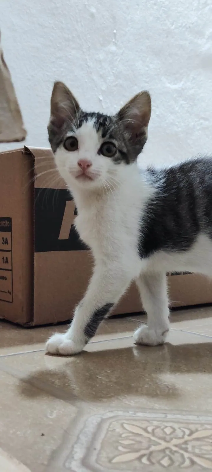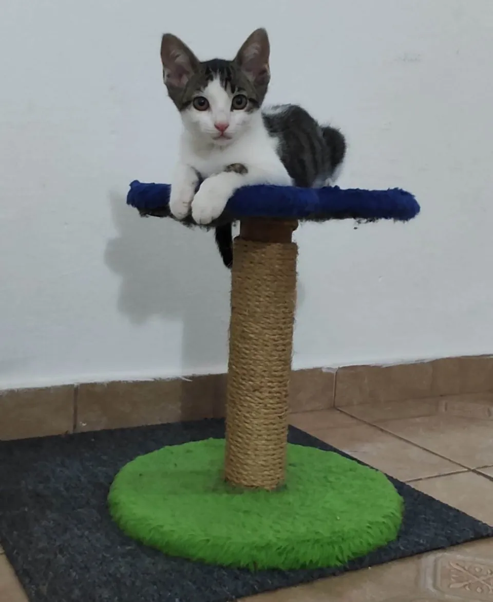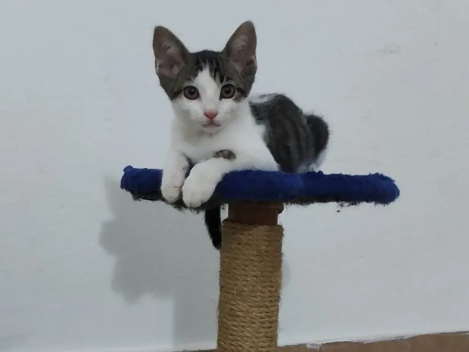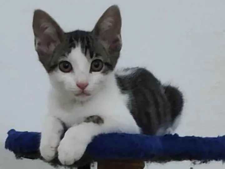 "Adote o adorável Bruces! Esse gatinho de 2 meses em Cotia, SP, está à procura de um lar amoroso. Leve um novo amigo para casa!"