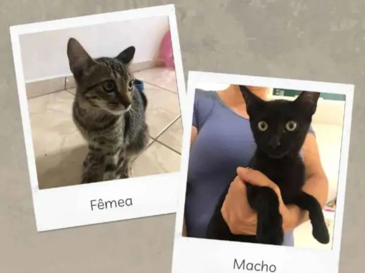 Encontrei este casal de irmãos na rua, procuro um lar responsável para ambos. Aproximadamente 4 meses, já comem ração e fazem as necessidades na areia.