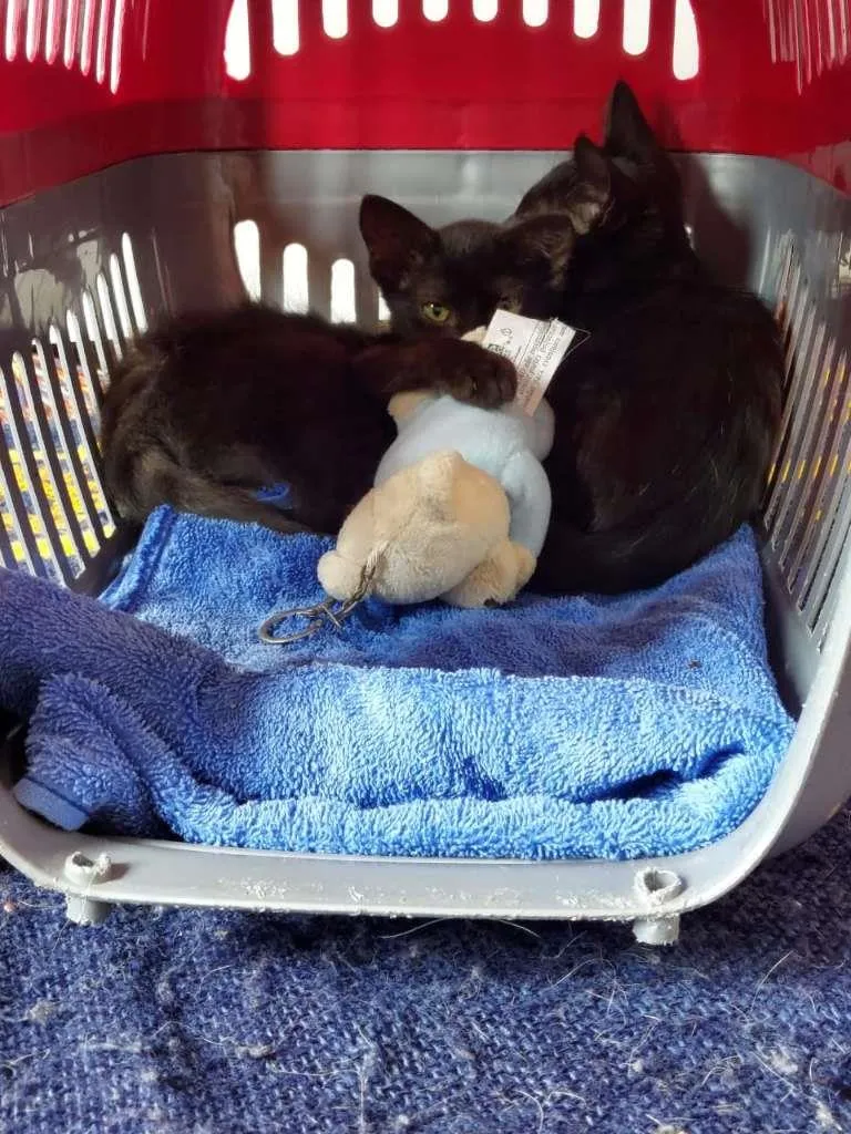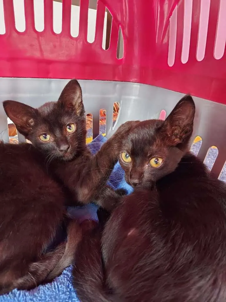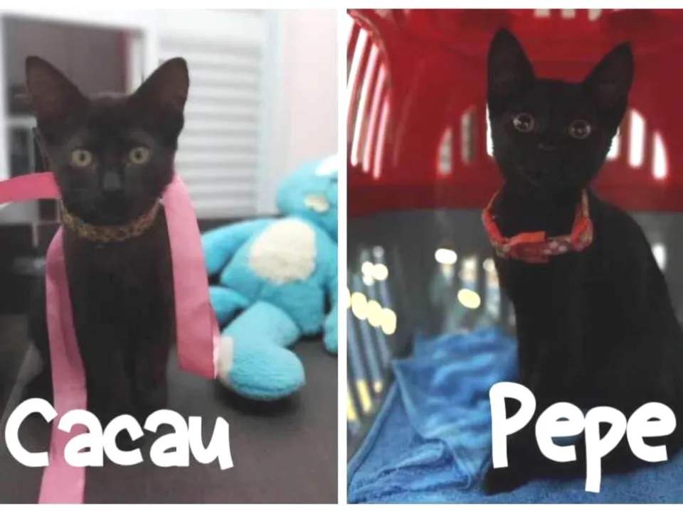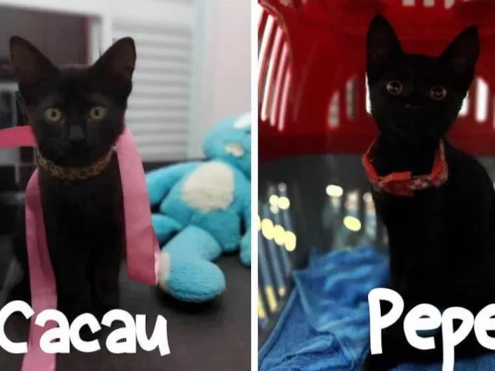 A Cacau e a Pepe são bebês de cerca de 2 meses de idade. Foram resgatadas na rua e agora estão em um lar provisório até encontrarem uma família definitiva.