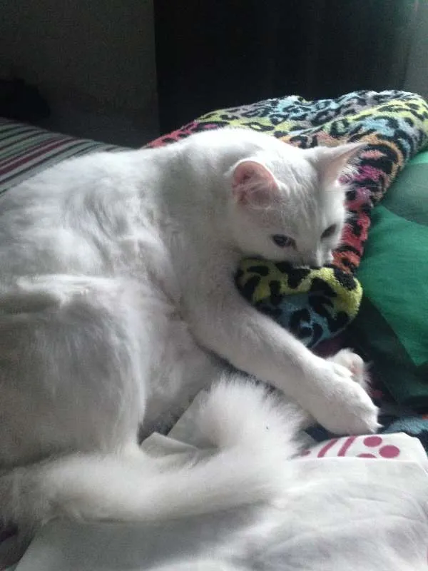 Esse é o Kin meu gatinho branco, pesa cerca de 6kg é peludão e tem os olhos bem azuis. Ele fugiu nesta sexta feira 16/06 aqui na região da Granja Viana, se alguém tiver alguma notícia, o visto ou pego o Kin, por favor entre em contato (11) 98573-1386.