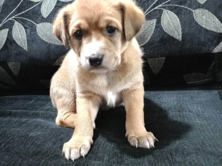 mãe dos filhotes é vira-lata tem pelagem muito curta ela é do porte médio para grande.