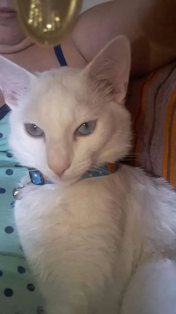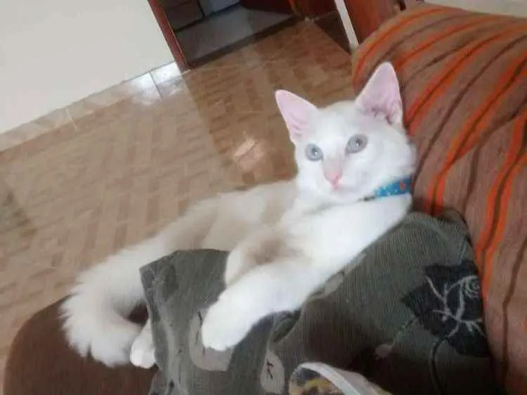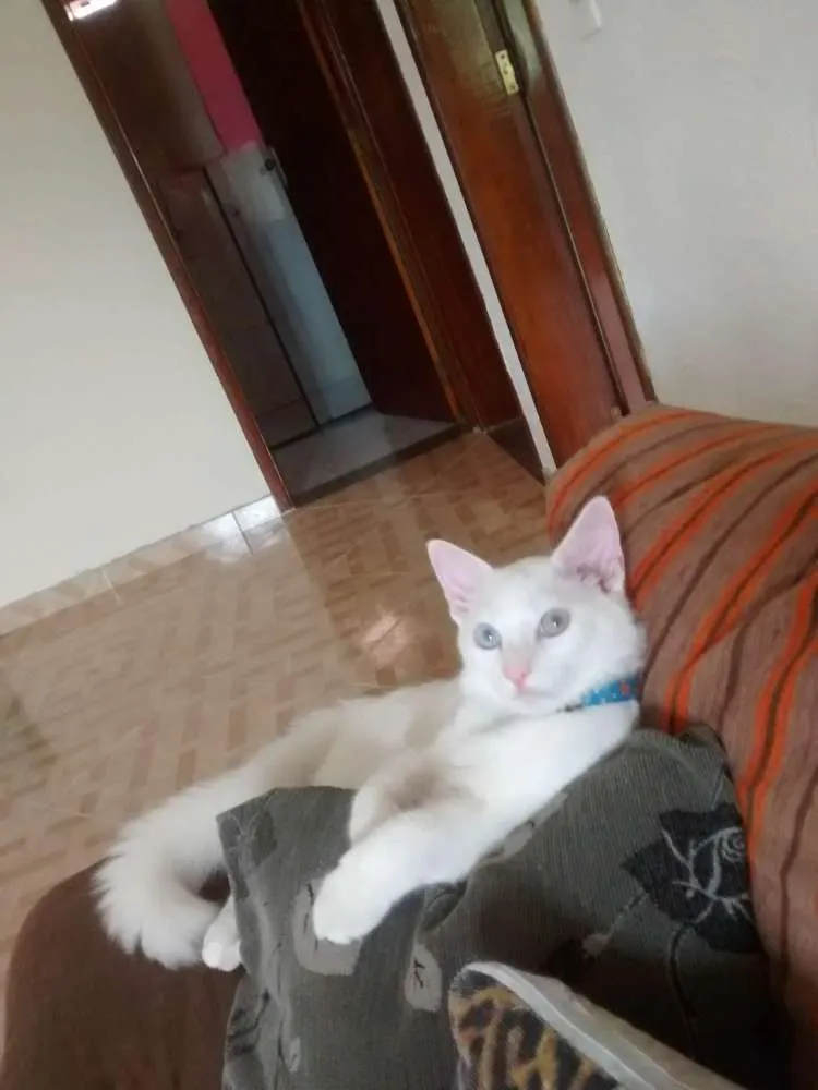 Meu gato sumiu na noite de ontem por volta de umas 20:30, estamos desesperados procurando por ele estou grávida e meu filho está muito triste com o sumiço dele, provavelmente ele sumiu assustado por causa dos fogos, na rua Santa Bárbara 287 JD canhema, quem tiver alguma notícia dele entrar em contato comigo por favor. Ele tem o rabo espichado,os olhos são cinzas, todo branco. Já é castrado e muito dócil