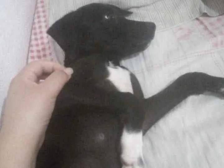 Este é o Sr. Toddy, um encantador cãozinho da raça SRD (Vira-Lata), com pelagem preta e tem 3 meses. Com porte médio, ele já está vacinado e vermifugado, pronto para encontrar um lar amoroso!