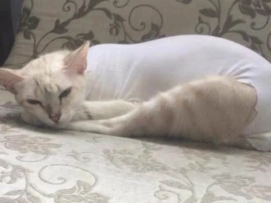 Ela possui uma cicatriz de castração na barriga.