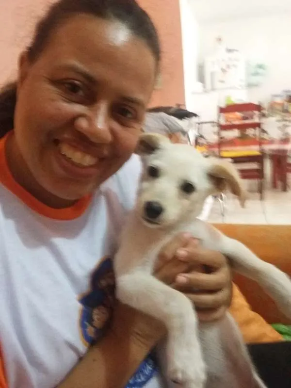 Encontrei-o na minha rua hoje 24-12 deve ter 2 meses no máximo. Fiquei com dó pois hoje é véspera de Natal e mais tarde haverá muitos fogos. Ele é carinhoso e inteligente, obediente também mas meu marido e minha mãe não o querem e minha cachorra não o está aceitando.Ele tem pelagem branca com orelhinhas champanhe e gosta de ganhar carinho no colo, fica quietinho mas tem também uma alegria viva é esperto mas não tão espuleta, percebi um temperamento bem equilibrado entre calmo e brincalhão. Ótima companhia para qualquer pessoa. Espero que achem logo um bom lar para ele. No aguardo. Me liguem 982270605 Fabiana - Embu das Artes. Pensei no nome de Boomer para ele se alguém gostar e quiser dar esse mesmo nome!?