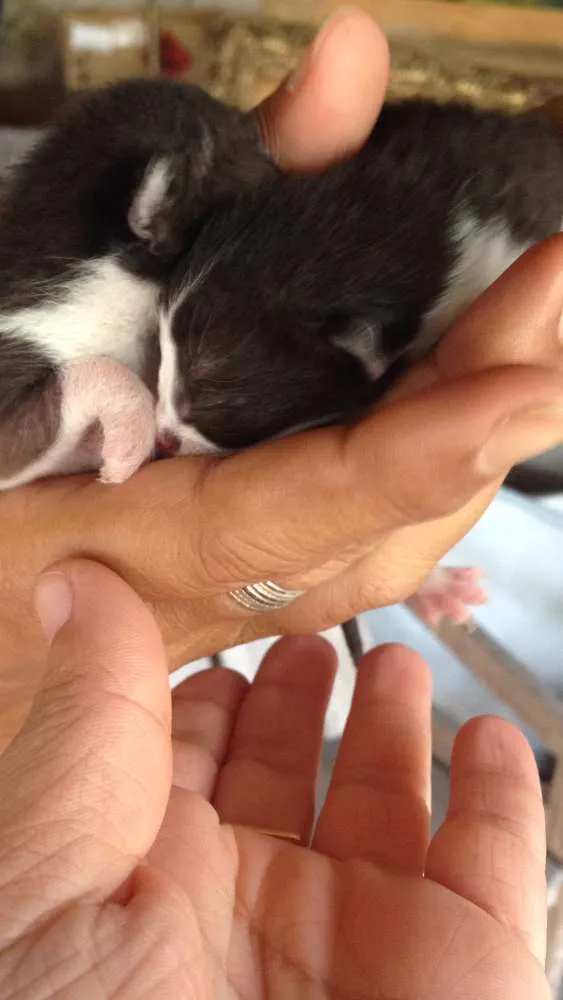 A mãe deles é gatinha de rua que cuidamos pq estava prenha.