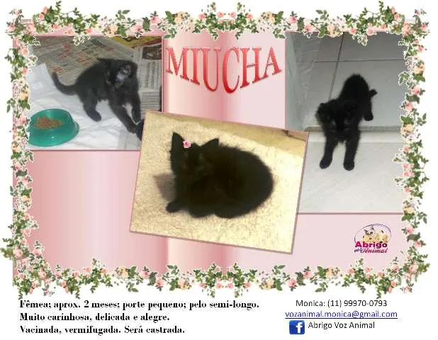 Conheça a Miucha, uma gata SRD, miudinha, esperta e carinhosa. Ela tem entre 2 e 6 meses e espera por um lar em Embu/SP. Adoção responsável!