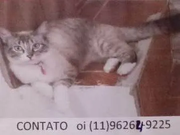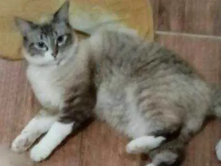 Olhos azuis castrada usando uma coleira rosa cm uma patinha