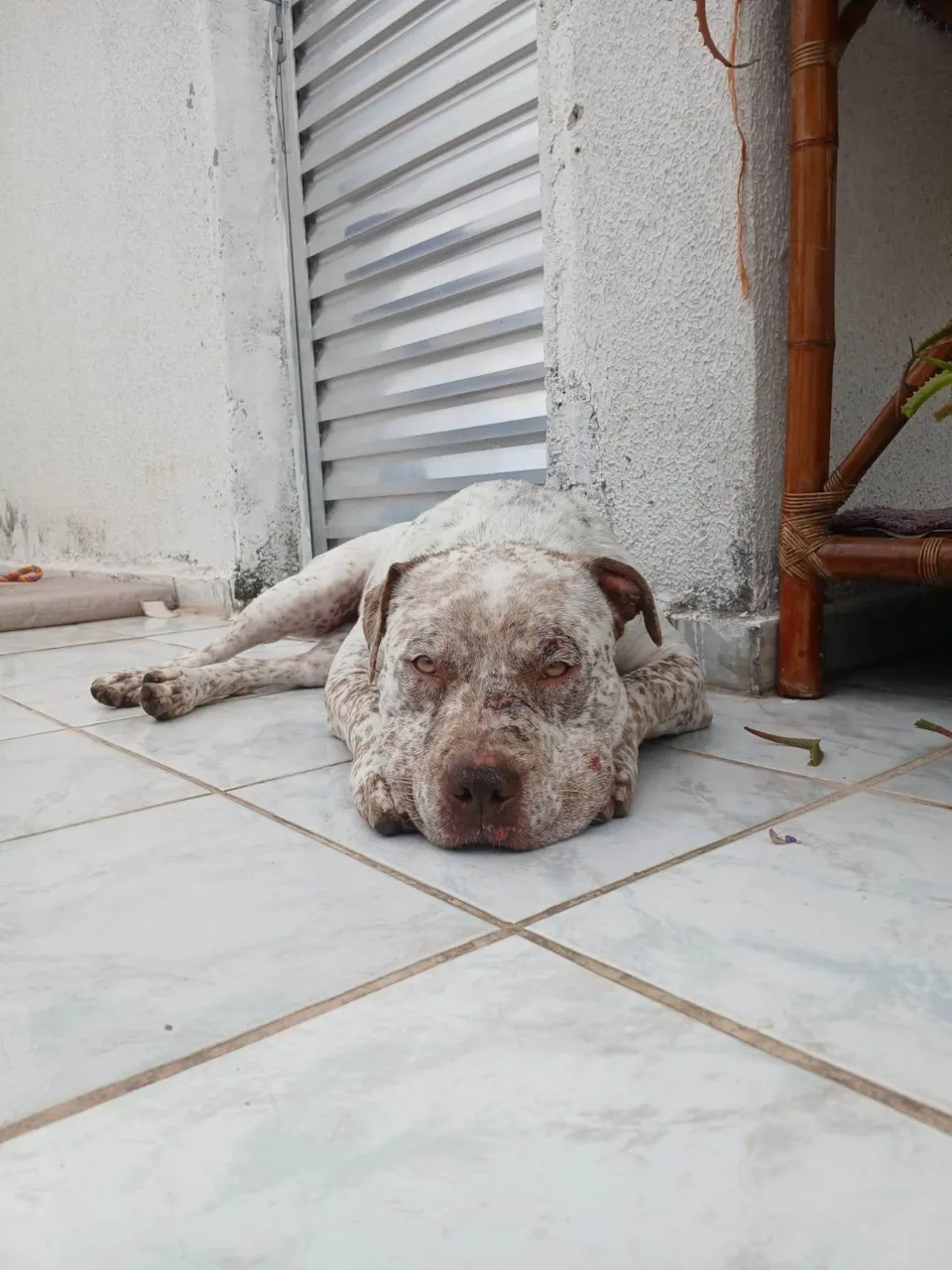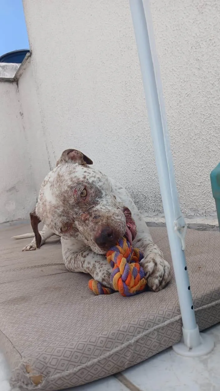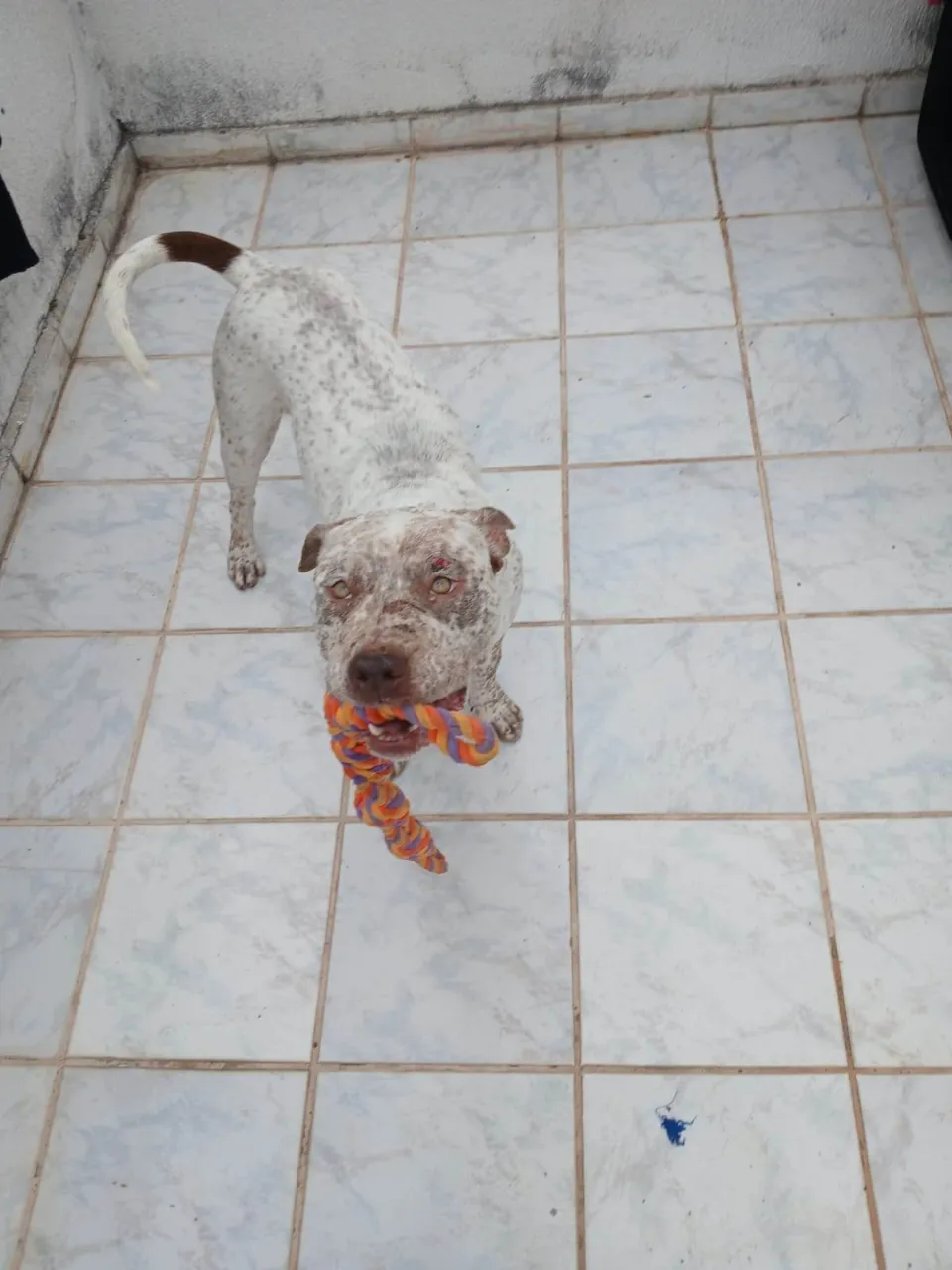 Cachorra resgatada, estava na rua toda machucada.Ela é um amorzinho, só quer brincar e ficar com alguém.Estamos cuidando das feridas e já demos remédios para carrapato, pulga e verme.Ela é nova, por volta de 1 a 2 anos.Está conosco em lar temporário, mas moramos em apartamento, só tem um quintal pequeno para ela. Já temos outros 3 gatos resgatados e 1 cachorro.Ela precisa de um lar com muito carinho