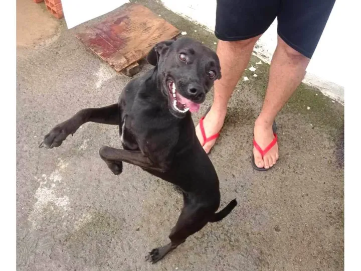 A nega é uma cachorra que pegamos para cuidar para não passar fome na rua, no entanto ela não se deu bem com nosso cachorro que já morava aqui pois ela é brincalhona e o outro cachorro não aguenta as brincadeiras por se tratar de um cachorro mais idoso