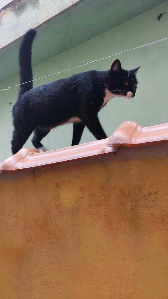Preto com manchinhas brancas coisa mais linda dócil carinhosa convive com crianças também é castrada