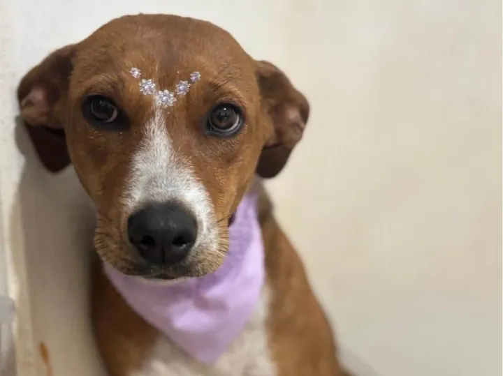 Cachorrinha fêmea, de porte médio, de 1 ano. Foi abandonada e buscamos alguém para adotar ou fornecer lar temporário. Ela é super dócil, muito brincalhona!