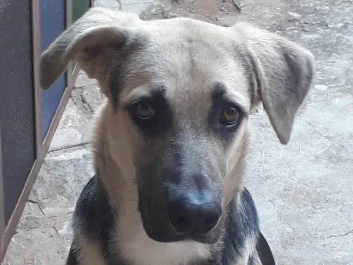 Esse cachorro é mestiço fila com pastor alemão, cor preto com amarelo, é dócil e gosta de brincar, é vermifugado, é vacinado, de porte grande , serve para vigiar residência , chácara.