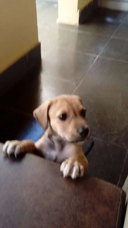 Filhotinho dócil e brincalhão à espera de um lar. Já come ração.