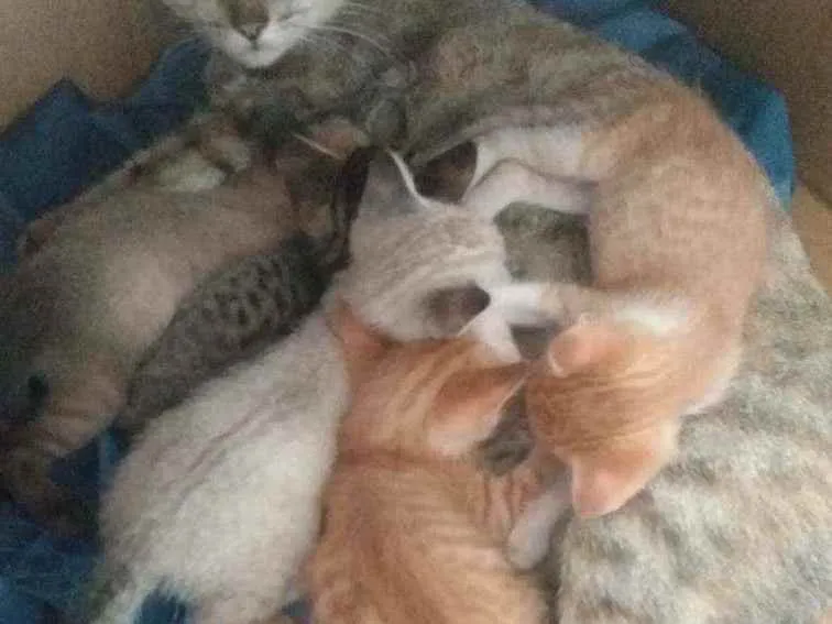 Minha vizinha se mudou e deixou uma gata com 5 filhotes recém nascidos , sendo 3 machos e 2 fêmeas , não tenho condições financeiras pra ficar com eles por isso estou em busca de um novo lar para eles.