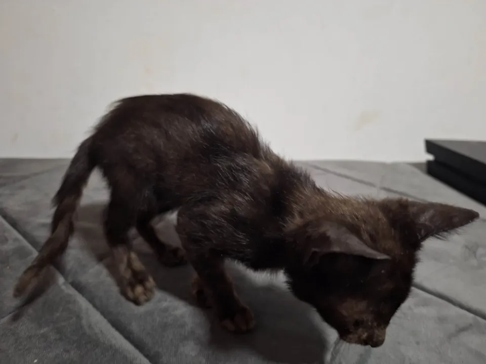 Doa-se gato, pelagem preta, fêmea, aproximadamente 40 dias de vida