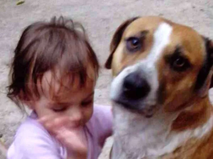 O pedreiro deixou o portão aberto para outro cachorro que temos entrar, porem quem acabou saindo foi nossa cachorra velhinha. Ela não é de sair na rua, por isso de ela não conseguir voltar. É nossa companhia. Ela é grande, porem muito dócil, ela tem porte da raça boxer com vira lata