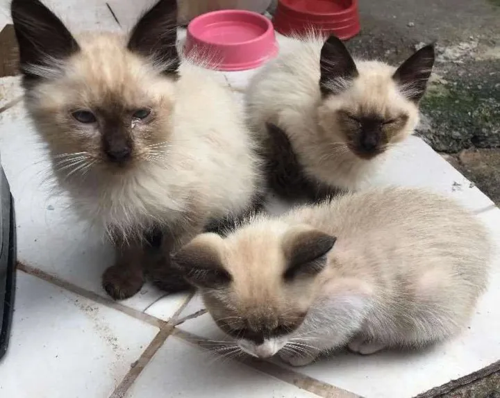 Olá eu não sei a raça dos gatinhos ,no caso eu havia adotado a mãe dos gatinhos ,mas não sabia que ela estava grávida,ela deu à luz a eles ,e saiu pra Rua e não voltou mais . No total são 4 gatinhos ,eles têm quase 3 meses,são dóceis e bem famintos ,olhos azuis .