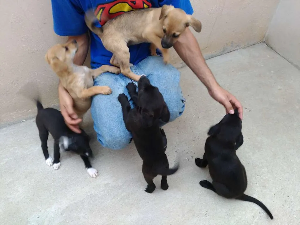 Filhote vermifugada e não castrada. A mãe foi encontrada na rua e tem porte pequeno. São 5 filhotes fêmeas, nascidas dia 13/10/2017, muito carinhosas e saudáveis.