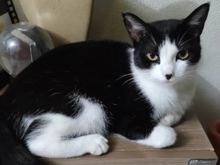 Gatinha especial. Tem 3 patas. Mas vive e corre normalmente como outros gatos, ela da uns pulinhos feito coelho. N é acamada. Come e bebe normal. Muito linda e esperta.