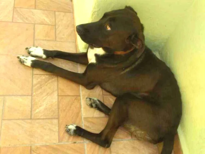 Procuro novo lar para o Negão, pois estou grávida e o médico me proibiu ter cachorros em casa, devido a problemas de saúde que possa vir a desenvolver tanto em mim quanto no bebê.