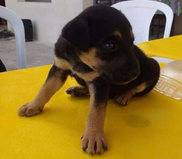 Cachorrinha abandonada na porta da casa da minha prima. Ainda eh bem nenenzinha, nem desmamou!! Não podemos ficar c ela, temos gatos e outros cachorros grandes e machos que vivem soltos e podem machuca-la, além de n termos disponibilidade p os cuidados q ela precisa por ser tão novinha.