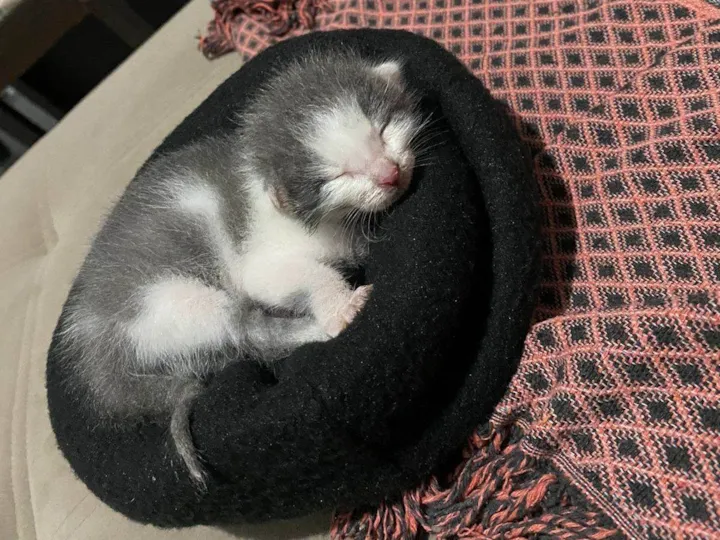 Gatinha deixada na minha porta, recém nascida, não respeitaram o desmame, alimento ela com Pet milk.. Não consigo ficar com ela, pois moro sozinho e trabalho na maior parte do dia.