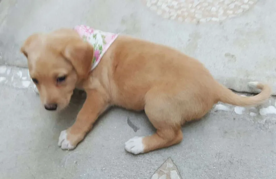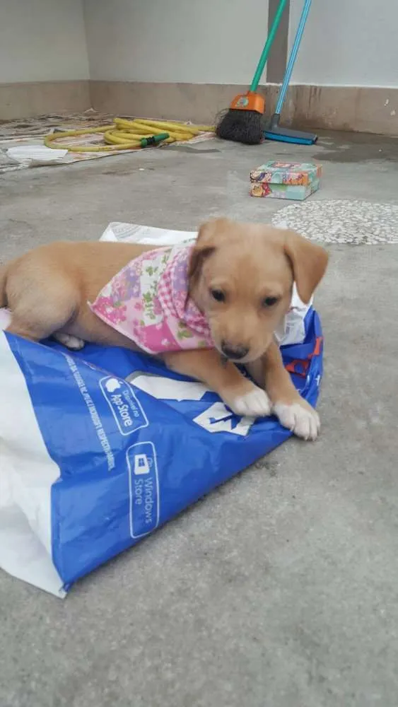 ANGEL , FILHOTA FEMEA COM 45 DIAS , VERMIFUGADA , DEVERÁ FICAR COM PORTE MEDIO /PEQUENO , SERÁ DOADA COM 2 DOSES DE V8 E COM CASTRAÇÃO GARANTIDA .