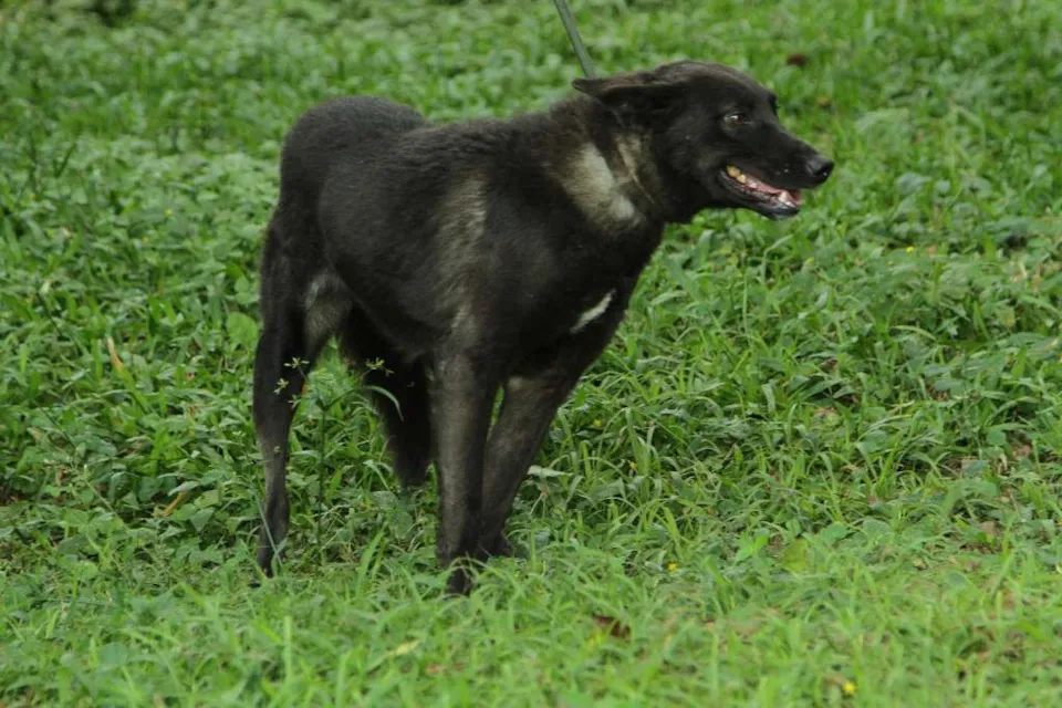 Pesa 19 kg. Porte Médio. Acreditamos que tenha por volta de 3/4 anos.