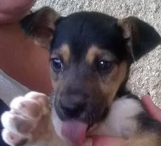 Achamos em nossa calçada, onde por enquanto estamos dando água e comida para ele. Mas não podemos ficar com ele porque já temos duas cachorras de porte grande, e ele por se macho complica nesta situação.