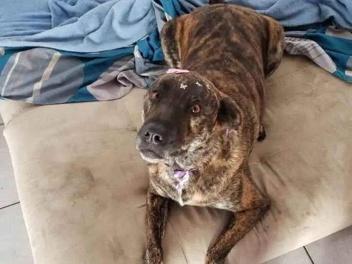 Essa é a Cássia Eller, cachorra de porte grande. Peguei da rua, toda machucada e bichada.Se dá muito bem com outros cães e adora crianças. Castrada, com vacina e vermífugo em dia. Ótima para guarda de quintal, mas também vai adorar receber um colo se você oferecer.Sabe os comandos de sentar, deitar, dar as patinhas e esperar pra comer.Só faz as necessidades fora de casa, seja no quintal ou na rua.Ama de todo coração brincar e destruir BOLINHAS (e não a casa).