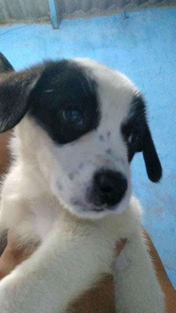 Cachorrinho filhote macho, branco e preto, tem uma pelagem bonita. Meu esposo achou ele abandonado na empresa aonde trabalha, não tenho como ficar com ele pois já tenho 5 cachorros, ele é bem brincalhão e parece gostar de crianças.
