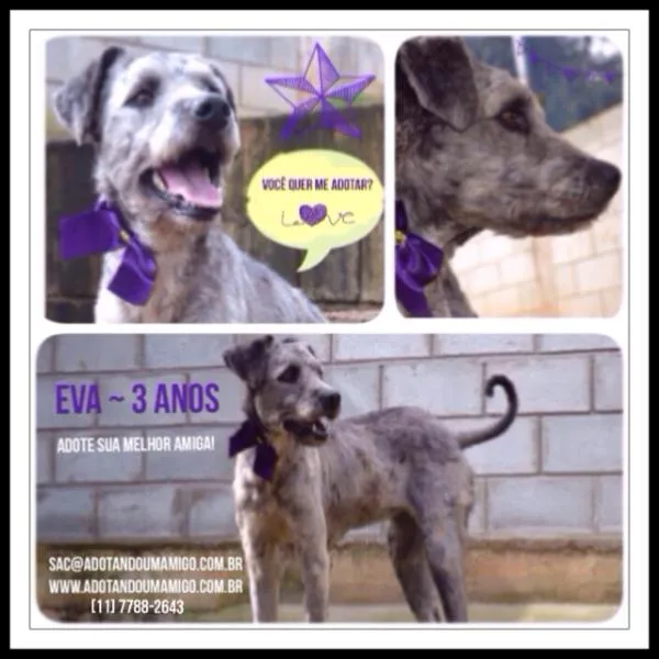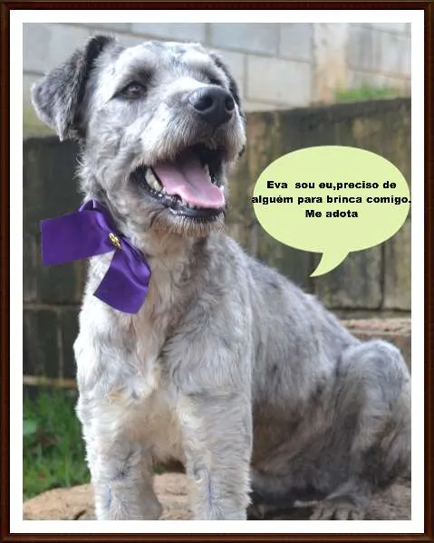 - Eva é uma misturinha linda de poodle. Adora carinho e é muito meiga. Gosta de brincar e é muito companheira. Resgatada das ruas, e do sofrimento. Esta prontinha para ser adotada e encher seu lar de alegria. Já é castrada, vacinada e vermifugada. Tem uma pelagem linda, na foto esta tosada. Pesa 15 kg, porte médio. Tem aprox. 3 anos. É muito dócil e se relaciona muito bem com outros cães. Eva espera encontrar uma família com muito amor. ADOTE EVA.