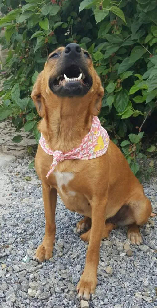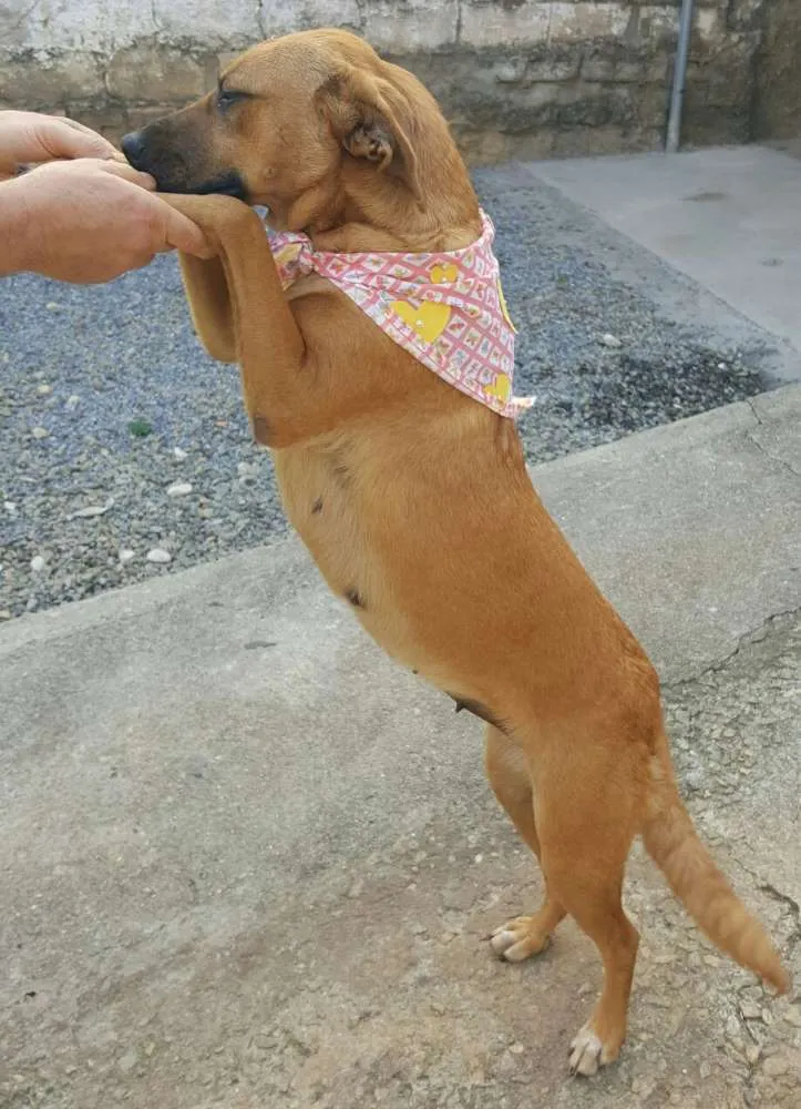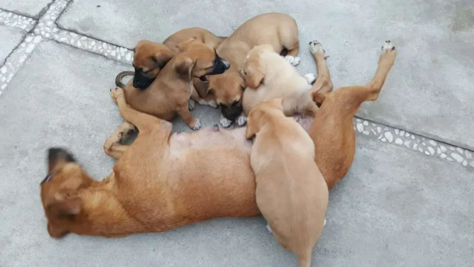 FOI RESGATADA JUNTO COM SEUS FILHOTES QUE JÁ FORAM DOADOS E AGORA ELA ESPERA UM LAR .