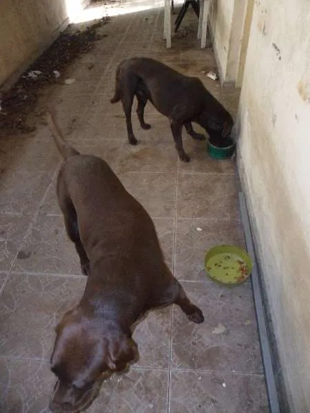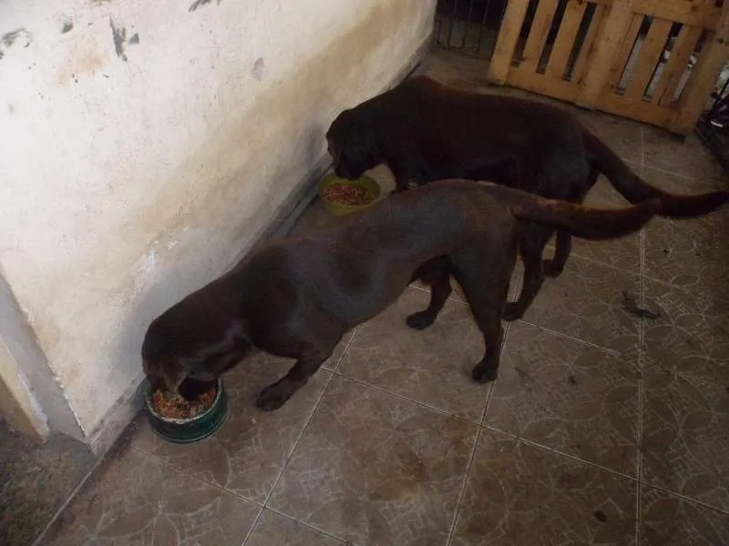 São dóceis, olhos cor de mel, pelagem curta na cor chocolate, bem cuidado, não estão castrados.