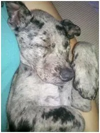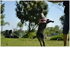 Rajada, acinzentada, dócil, companheira, brincalhona e gosta de brincar e correr.