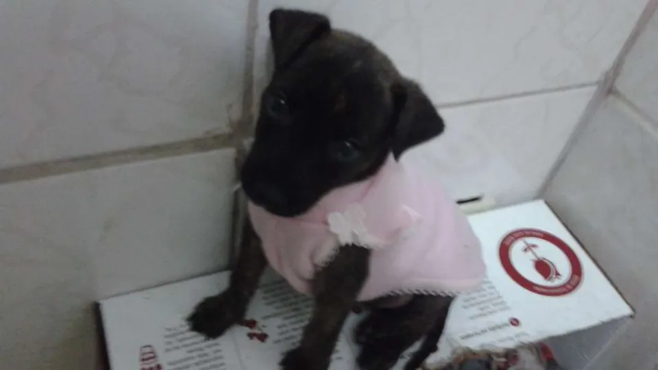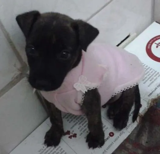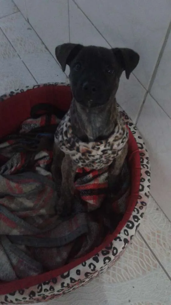 Doa-se linda cadelinha, tem aproximadamente dois meses e meio, tem pelagem malhada e curta, super amorosa e adora crianças, e muito obediente.. Não se incomoda com presença de outros animais.