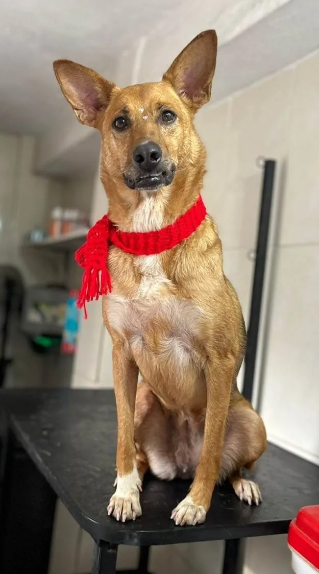 Ela está em LT em Mairiporã, pesa por volta de 12kg, muito dócil, se dá bem com outros animais e crianças.