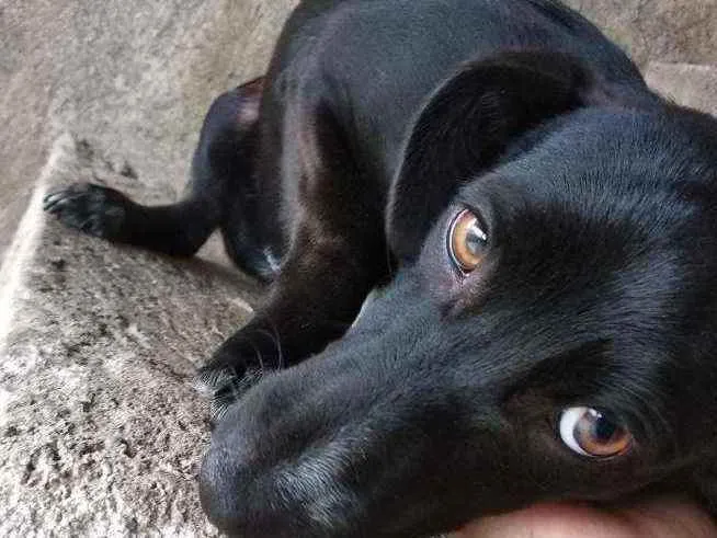 Ela foi abandonada e a resgatamos. Não podemos ficar com ela, pois meu pai não aceita mais bichinhos em casa e ela está com muita crise de ansiedade mastigando as coisas em casa. Ela é dócil e muito hiperativa, só quer uma casa pra ficar e companhia.