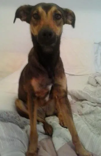Cachorra encontrada na praia das Pitangueiras, no Guaruja, de porte médio e jovem. Estava perdida, com muito medo e foi deixada no Canil Municipal do Guaruja. Ela é muito mansa, marrom e preta e tem um pouco de pelos brancos na região peitoral.