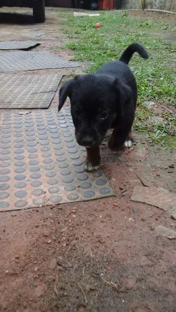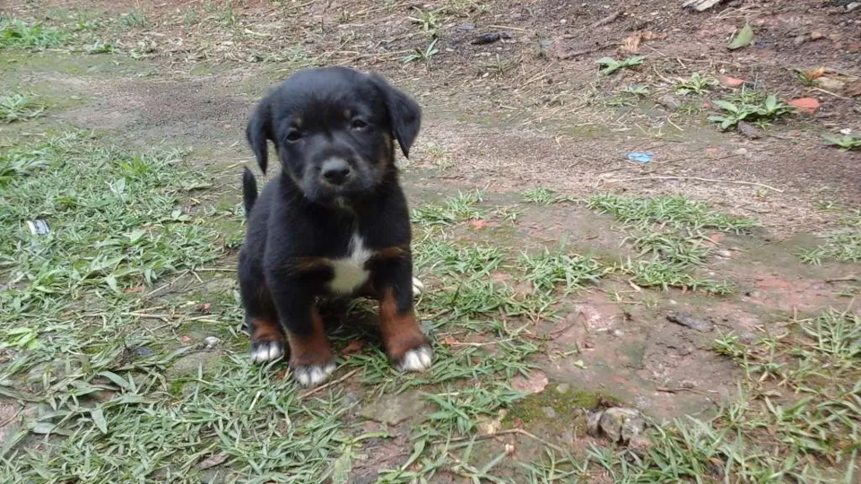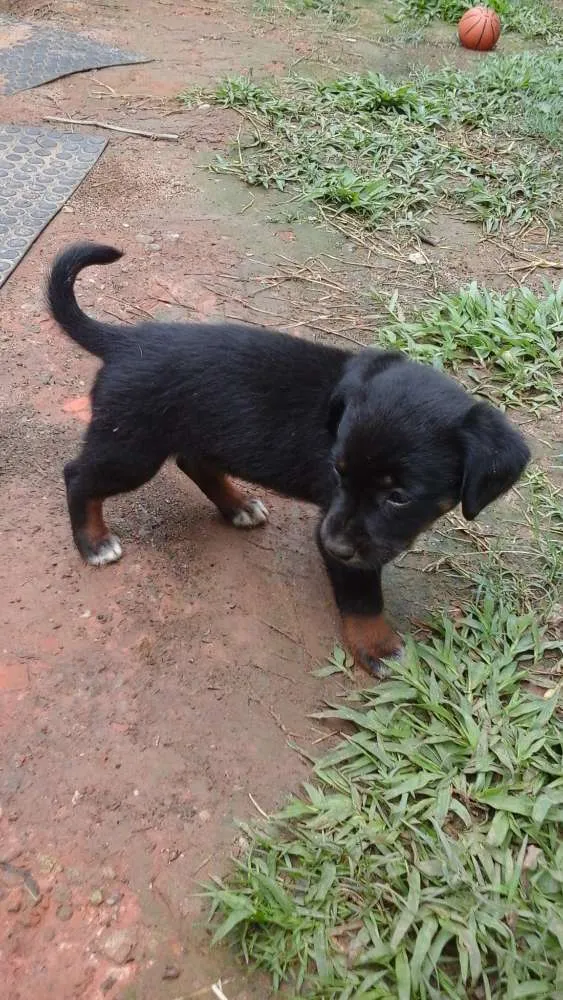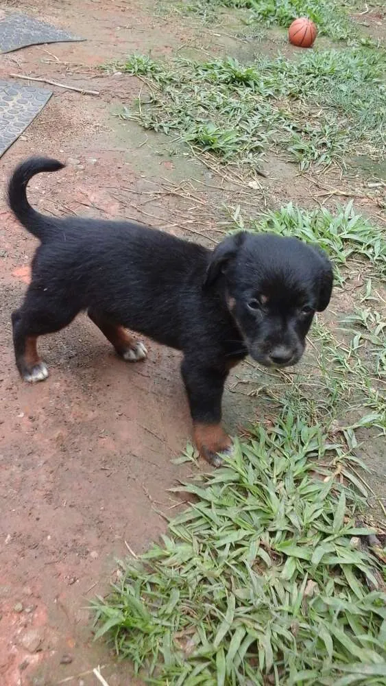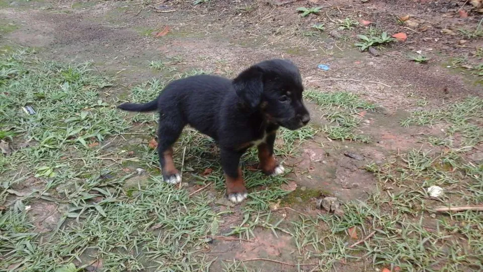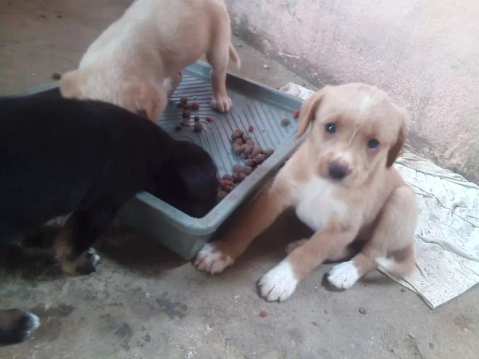 "Oi, Preciso de mais que um dono, preciso de um amigo e amor. Minha mãe foi encontrada na porta de uma faculdade, vagando com fome e frio, alguém deve ter abandonado ela, pois ainda estava com coleira. O atual dono dela se comoveu e levou pra casa e pouco tempo depois: Tcharaam... eu nasci linda e forte e busco alguém pra cuidar de mim pois aquele que resgatou minha mãe, não tem condições de ficar comigo e meus 3 irmãos".